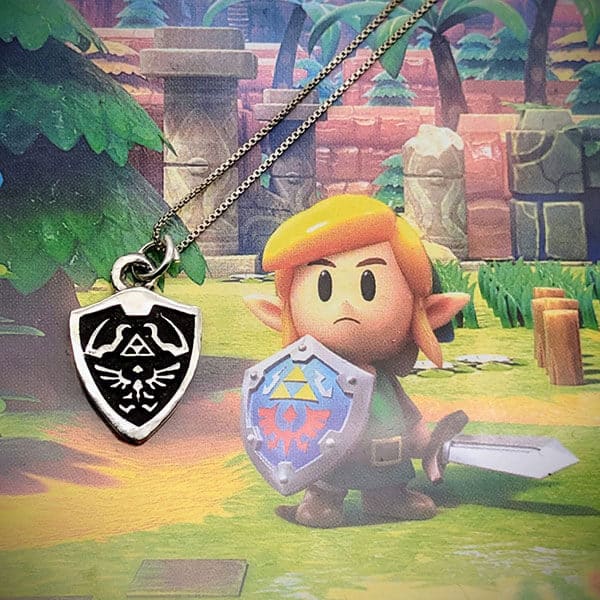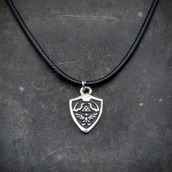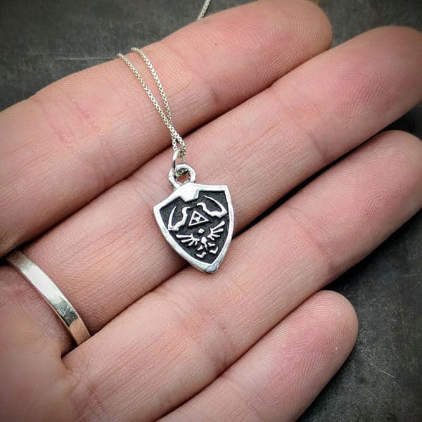 Este colgante hecho a mano en plata de ley está inspirado en el escudo de Link de los videojuegos Legend of Zelda.