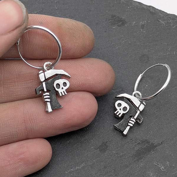 Sterling silver Grim Reaper earrings (925). Horror, fantasy, and dark humor come together in a unique handcrafted piece.